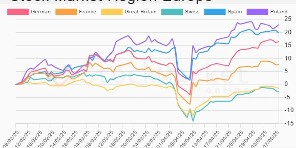 โ In conclusion, Europe's markets present a picture of growth coupled with volatility. Countries like Germany, Spain, and Poland show consistent positive performance over diverse timeframes, suggesting robust market conditions. However, caution is warranted for nations like Switzerland, where recent trends show market challenges. Investors should consider these dynamics when making strategic decisions to capitalize on Europe's evolving economic landscape.